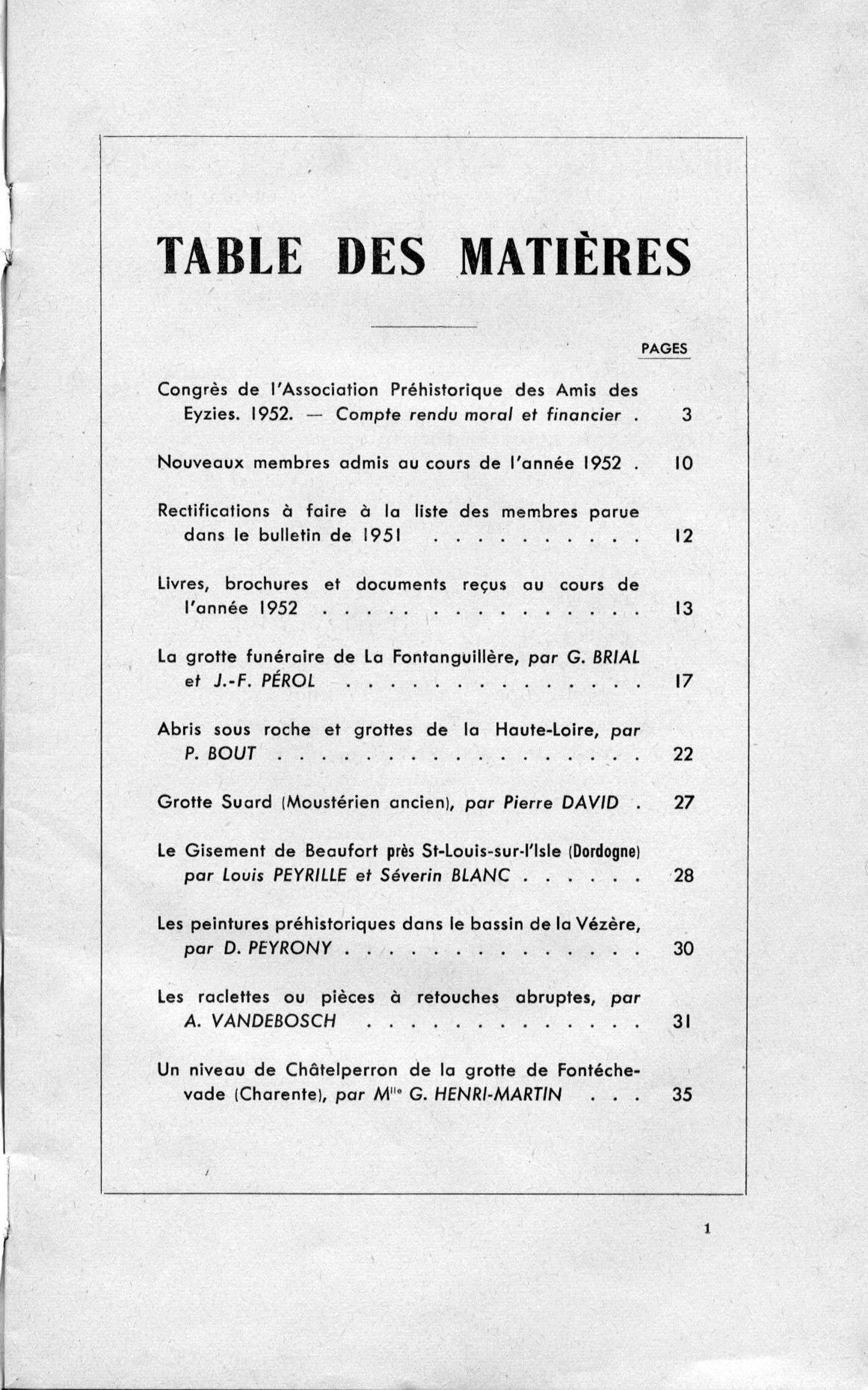 NOUVEAUX MEMBRES ADMIS 1952